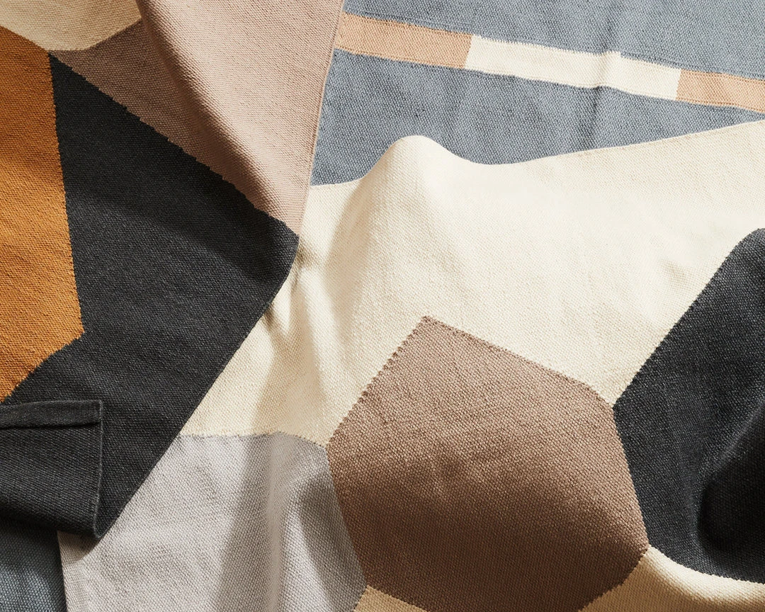 Bold yet minimal. The Lines Rug Dusk was handwoven by a weaving co-operative in Huancayo, Peru. A wool-cotton blend makes for a lightweight yet durable rug. Due to the nature of handcrafted goods, slight variations are embraced.
