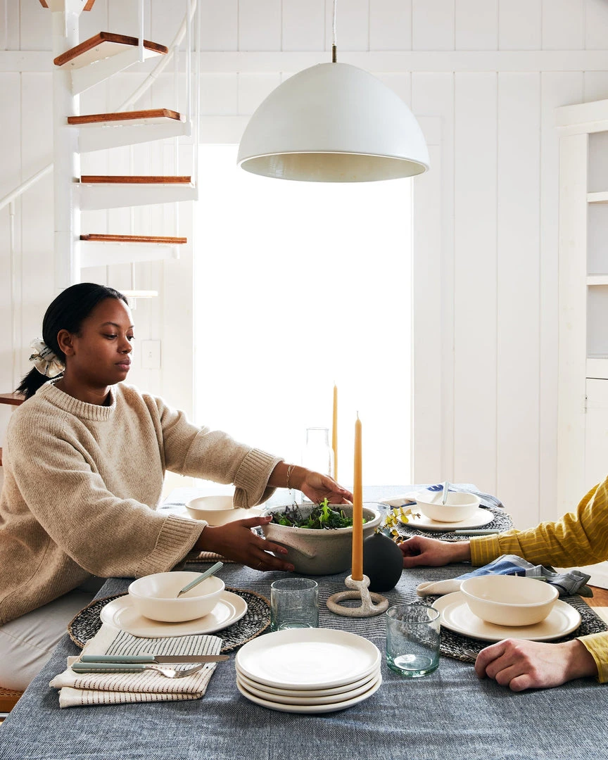 The Stack Tablecloth is a versatile, neutral backdrop to mix and match with any table setting and decor style. Inspired by the play between shadow and light, this tablecloth reminds us of warm sunlight casting shadows through windows in the early evening. Handwoven by a family run workshop in Oaxaca, Mexico. Due to the nature of handcrafted goods, slight variations are embraced.