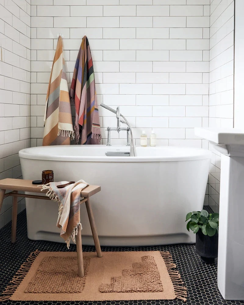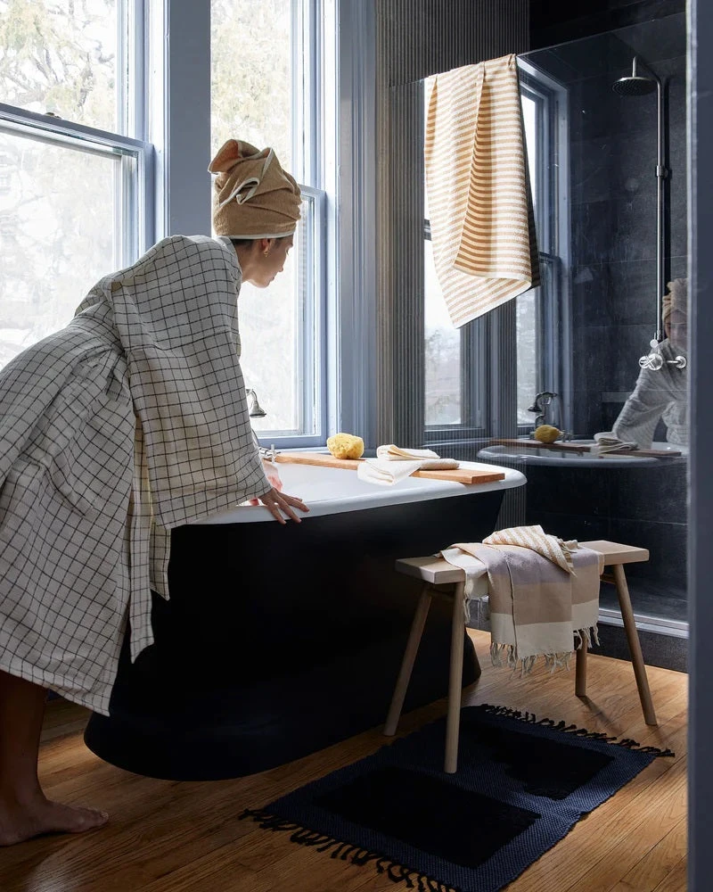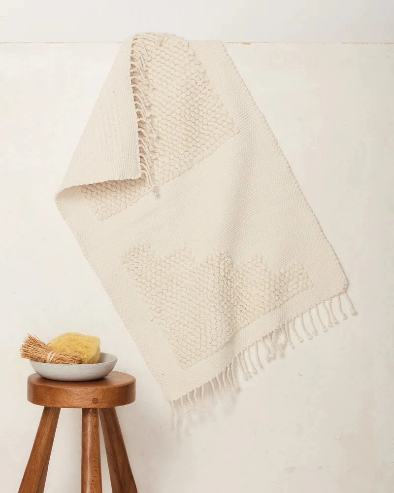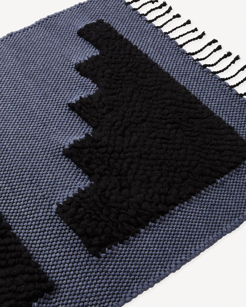 The Steps Mat in midnight is inspired by architect Luis Barragan. The handwoven cotton mats have a looped weave, creating a cozy texture for stepping and standing – perfect for use as a bath mat or in front of the kitchen sink.