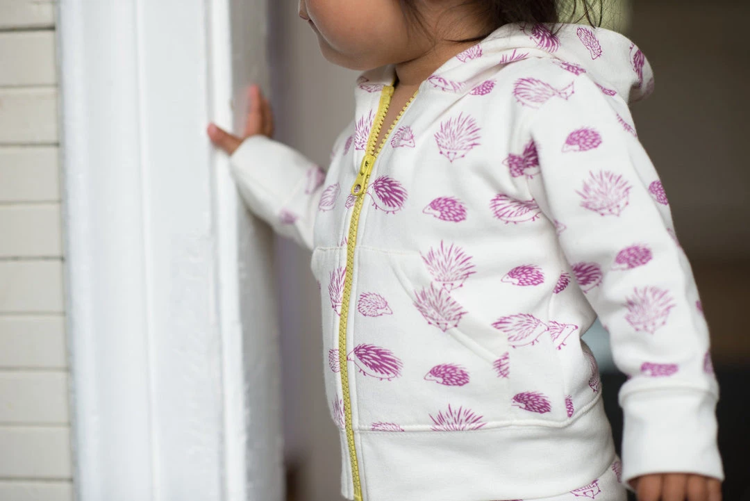Clean and simple design with a pop of color, this hoodie is gender-neutral and whimsical in style. The hoodie has two pockets in the front and a contrasting zipper and hood lining- making it fun and practical.Â
