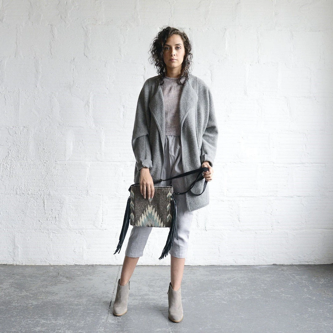 The Smokey Quartz Wool Fringe Bag adds style and movement to your look. A convenient crossbody bag that hits all your must haves, including personality. From festival to farmers market this fringe bag will take you wherever you want to go.