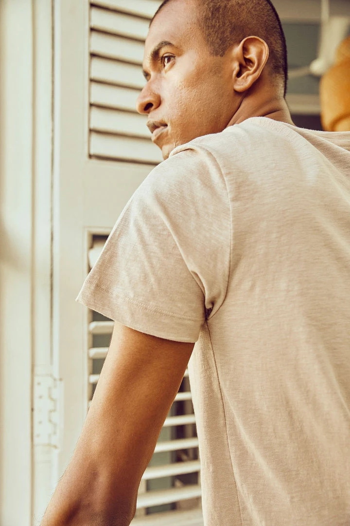 A classic tee with no-frills simplicity, made better by the slub fabric’s subtle, natural texture, which also ensures that the tee ages wonderfully.Â