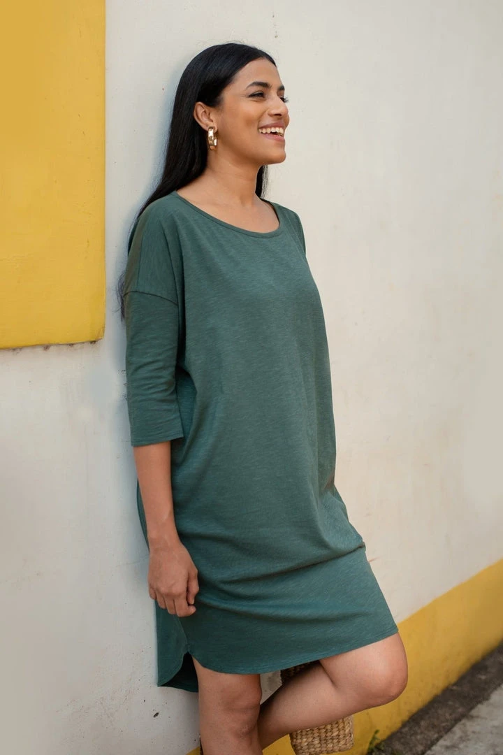 For times you really don’t want to think too much and just need a comfortable grab and go. We went with fitted sleeves to contrast against the boxy silhouette and add some versatility. This allows the Tunic to be casual, easygoing and well-suited to all body types, albeit with a bit of definition. The boat neckline, drop armholes and a high-low hemline enhance the relaxed look.