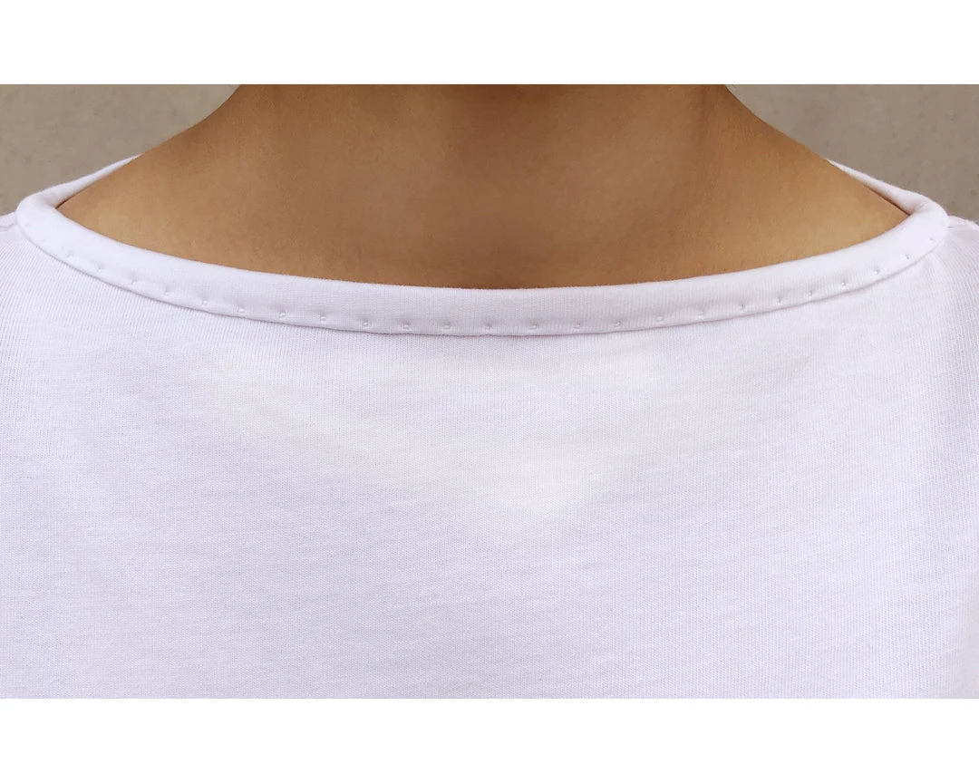An everyday dress made of upcycled cotton jersey leftover from the fashion industry. The Naughties dress is inspired by the “Naught-ies Tee” that defined a generation. Style it the 90s way with the structured sleeves down, or roll them up with the red string detail for a tailored shoulder. Features hand stitched seams to accentuate the collar, shoulders, sleeves, and spine.