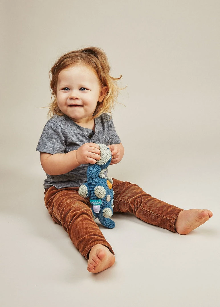 These dinosaur shaped rattles are handcrafted with care using organic cotton, making them safe for play. They’re soft in your baby’s hands and entertain while developing motor and cognitive skills.