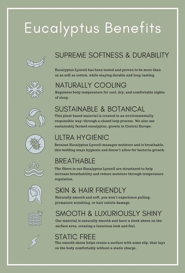Ultra cooling, soft eucalyptus is like silk, but more durable (and vegan). Each of Sijo’s items is created sustainably and Oeko-Tex certified, meaning there are no harmful chemicals used and that all components meet strict guidelines. Tencel Eucalyptus has been tested to be more than 2x as soft as cotton. Forest Tencel Pillowcases available here. Duvet covers do not come with inserts. Visit our Comforter Collection to find sustainable insert options.