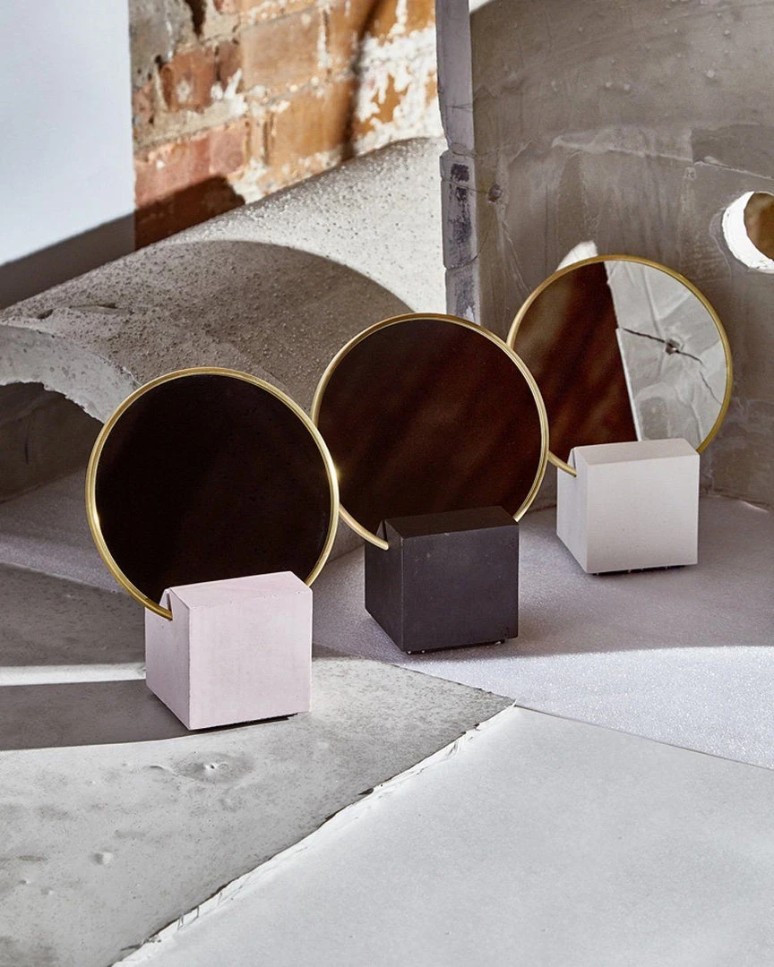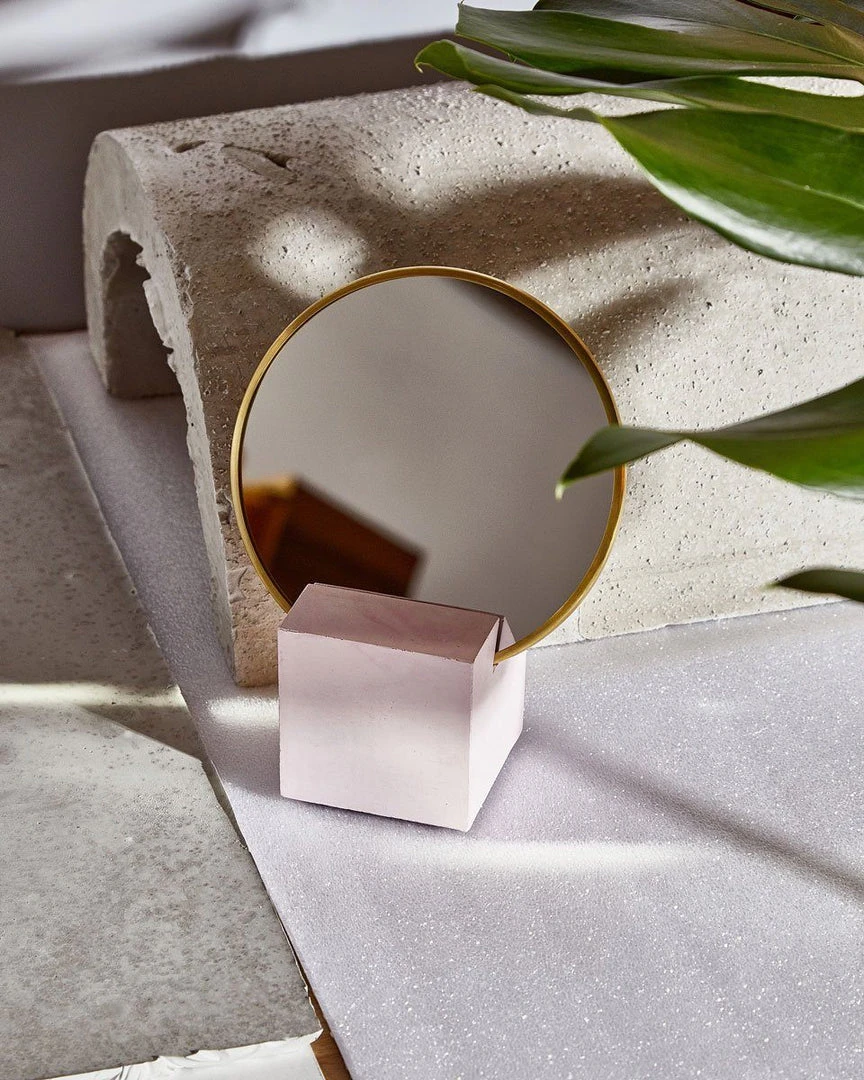 Cube base with 6″ round mirror, brass edges and rubber backing. The perfect addition to your desk or vanity. Packed and shipped in a protective box ready for gifting.