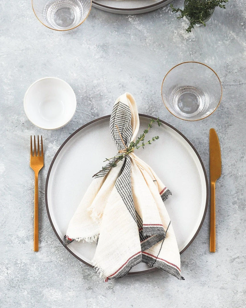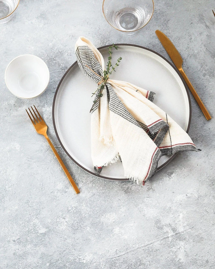 These napkins are minimalist, effortless, stylish and have an earthy feel to them. Their neutral palette will also compliment any of your dishes. These Kala Cotton napkins are handcrafted on hand-operated wooden looms, one of the oldest methods of textile production in India. The yarn is made from heirloom organic cotton grown in Gujarat, India. The crop is purely rain-fed so unlike large scale industrialized cotton production, it doesn’t require vast amounts of water to grow. Entirely a hand-crafted piece; slight irregularities are to be expected and celebrated