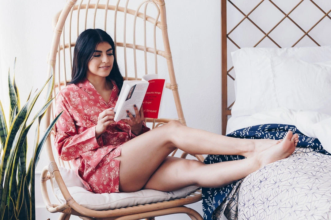 Complete with a button down collared top with a pocket and elastic waist shorts with pockets, this floral tattoo-inspired organic cotton pajama set will have you feeling super comfy and looking fabulous.