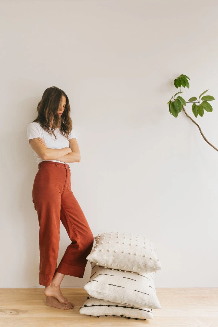 This soft, rustic, handwoven wool pillow cover was hand crafted in central Mexico. This traditional Mexican design adds a delicate, soft touch to any space. The wool is sourced locally and the dyeing and weaving is done in a family-run workshop in the Sierra Norte Mountains.