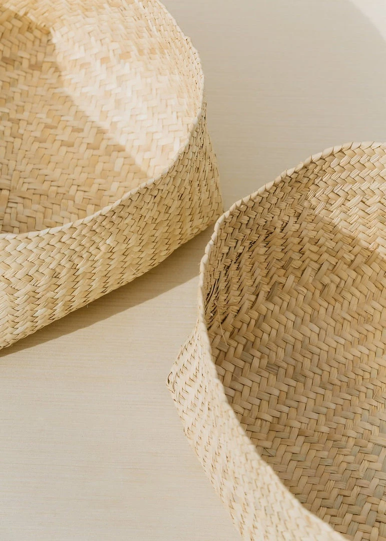 This handwoven table or floor storage basket is from the state of Oaxaca in Mexico. These cylindrical baskets are created by the Garcia family and represent some of the finest palm work in the region. Due to the handmade nature, sizes may vary slightly.