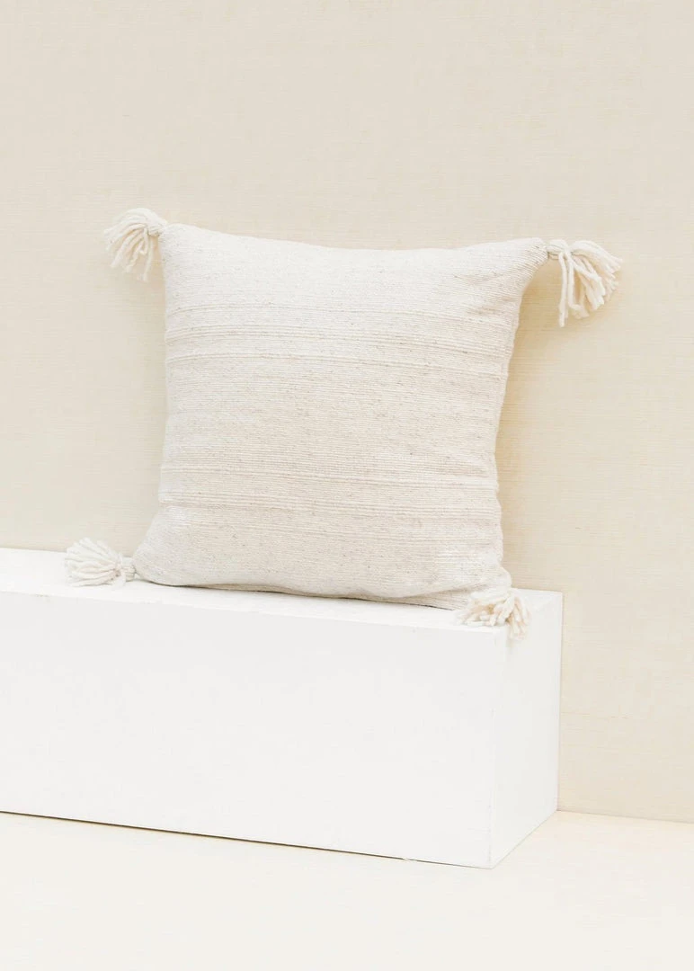 This soft, rustic, handwoven wool pillow is created in Central Mexico. The wool is sourced locally and the dying and weaving is done in the family-run workshop in the Sierra Norte Mountains.