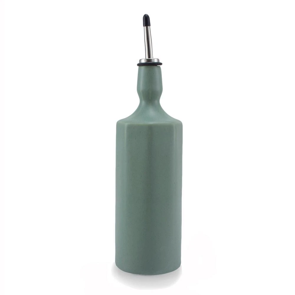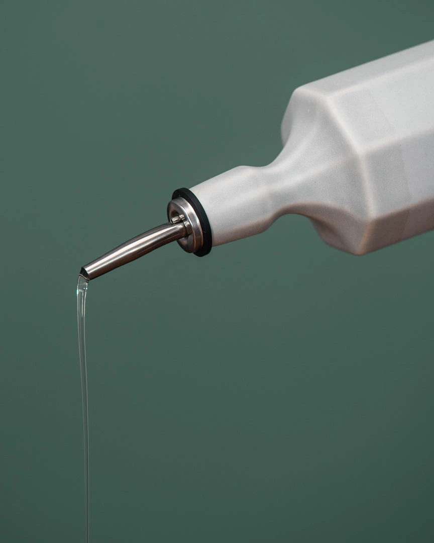 This modern handmade porcelain olive oil bottle is a versatile kitchen item. Use for olive oil, dish soap, bar drinks, and syrups.
