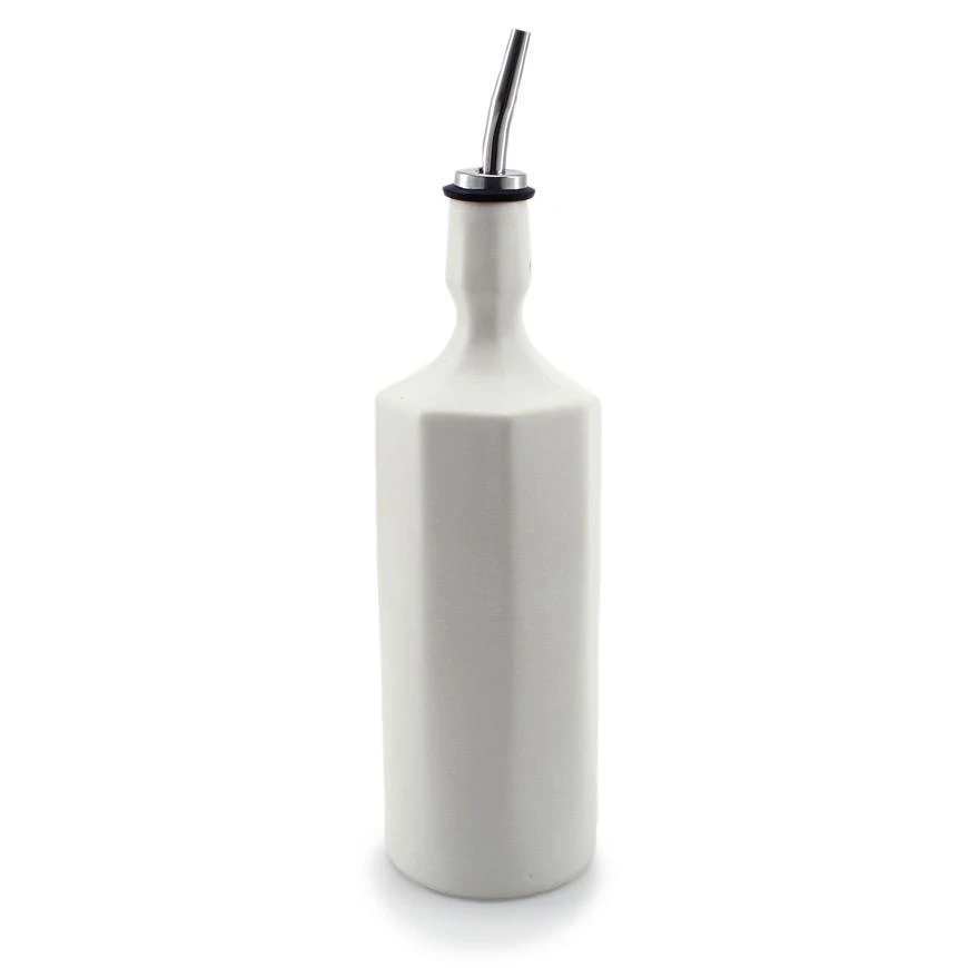 This modern handmade porcelain olive oil bottle is a versatile kitchen item. Use for olive oil, dish soap, bar drinks, and syrups.