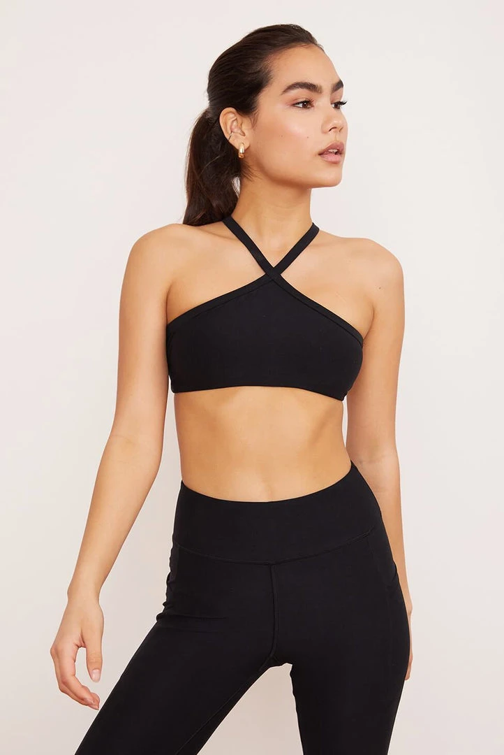 The LBD of workout wear. Versatile and always classic, signature black is the ultimate staple. Featuring a high Y-Neck in front and a sexy, strappy back, this style is perfect for wearing on its own as a bralette or layered under one of your favorite tanks.