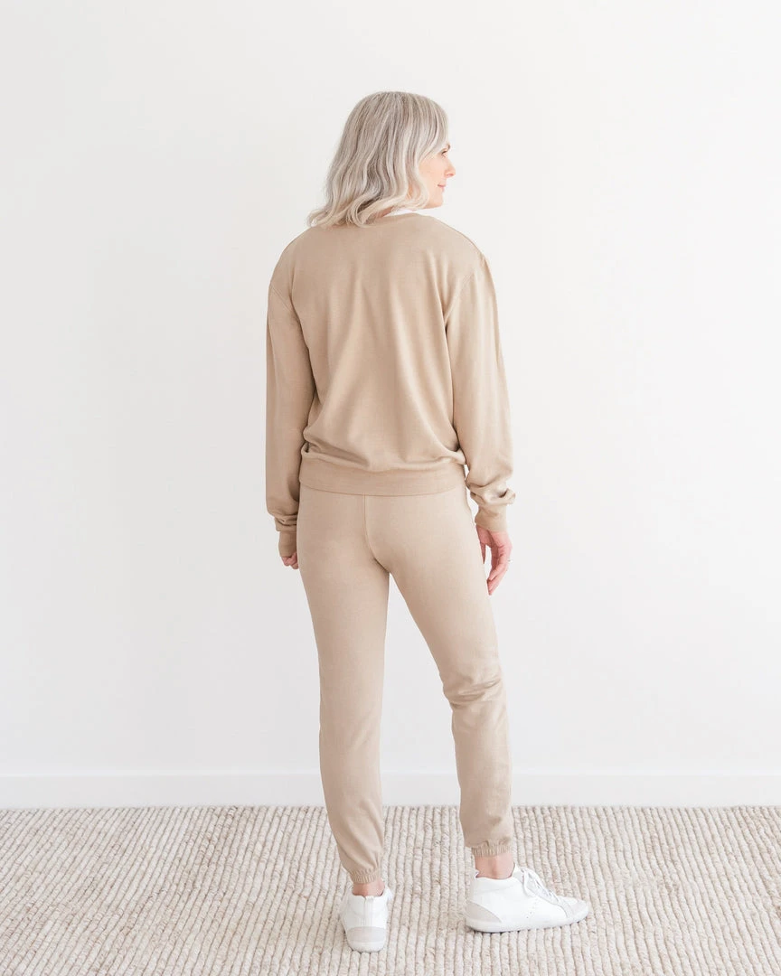 Resilient, anti-microbial modal and sustainable cotton come together in this soft fabric, making the Live In Sweatshirt ideal for loungewear go-to. Complete the look with the Throw On Pant for lazy days at home or wear it with jeans for coffee and errands on the go.