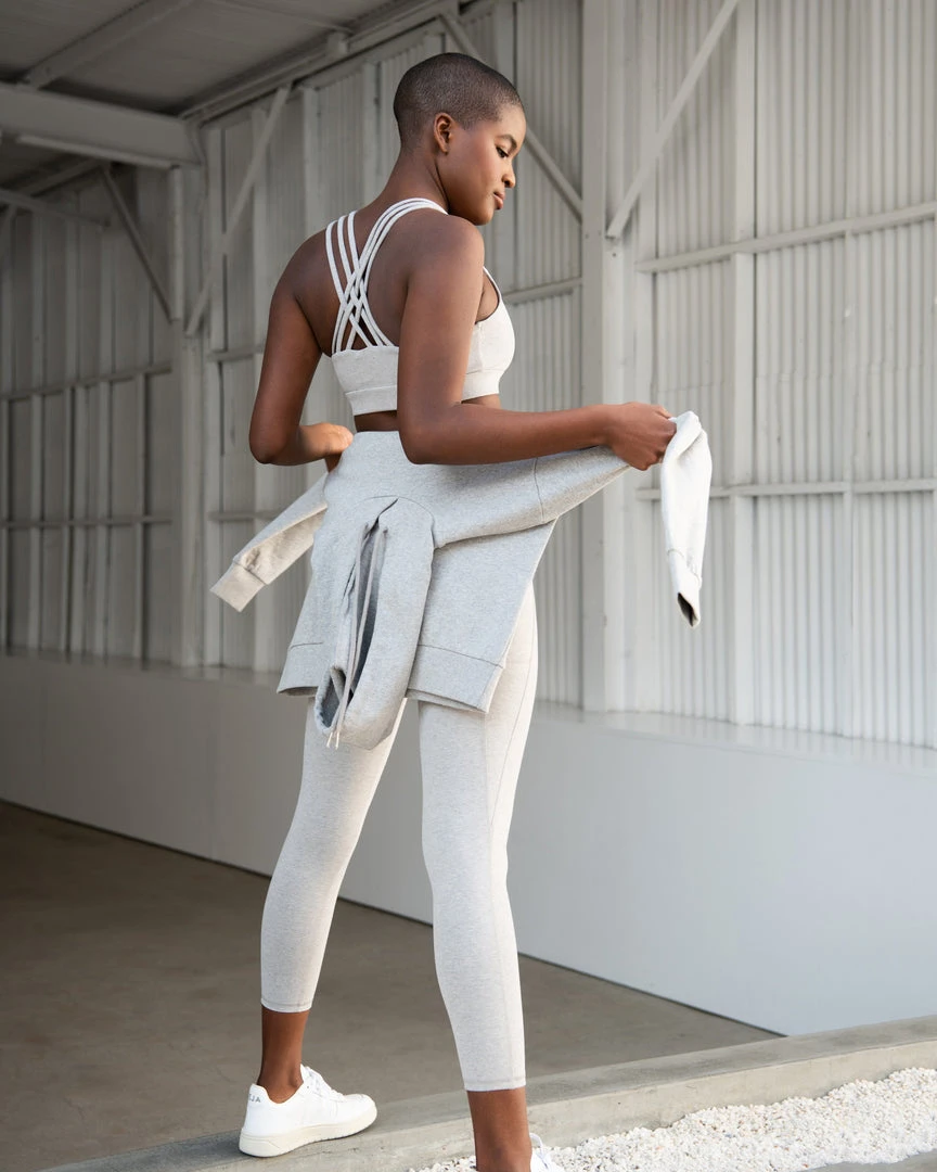 The Define Yoga Bra is made with a balanced blend of organic cotton and spandex. An ideal complement to the Renew Legging, with sleek triple-crossed strap detailing in back and full coverage in the front.