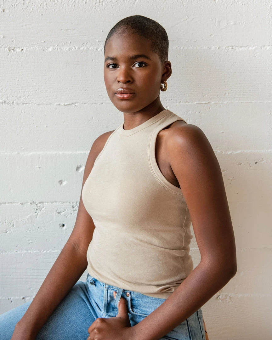 The No. 03 fine-washed jersey tank features a high-cut neckline and racerback design. A fitted silhouette makes for a sleek and streamlined look, crafted out of the finest organic cotton.