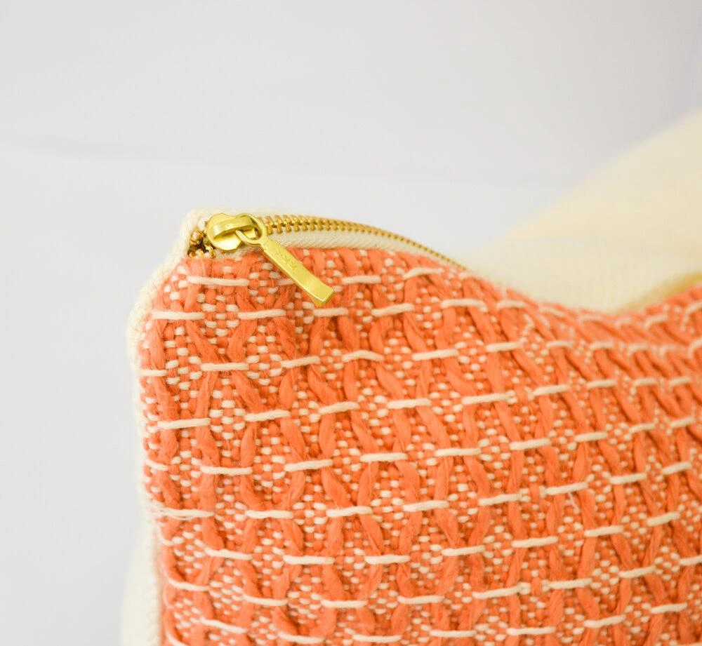 This two toned lumbar diamond weave guayaba pink and cream pillow, is a great way to add color and texture without being too bold.